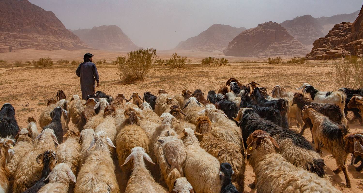 In this experience, the women of Disi offer you local insight into traditional Bedouin sheep herding and camel milking. You will be taken into the desert to an area suitable for herding sheep, and will accompany a local shepherd on a brief herding mission. As you walk with the shepherd and his herd, learn about this important pursuit and its significance to Bedouin life. When you arrive at your end point, the women will show you how to milk the sheep, as well as a camel, and you can taste the fresh milk. The women make butter and jameed (for mansaf) from the sheep and goat milk. You will live the full herding experience, helping to collect wood to make a fire for tea, cook a simple meal of bread and tomato stew, and forage local herbs for your tea, such as wild za’atar. Distinctive value This is an authentic Bedouin experience that connects visitors to the traditional lifestyle, the land, and the animals. It is unique in its simplicity, as the shepherd’s life is one of quiet and contemplation on long solitary walks with the animals. The activity maintains the low impact of Bedouin life on the surrounding environment; you will carry only what you need, make modest meals, and leave behind only the ashes of your fire. Activities